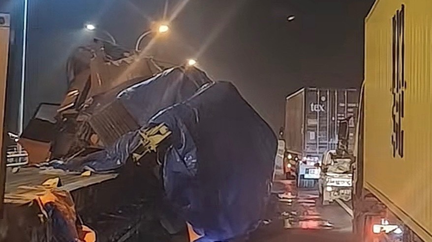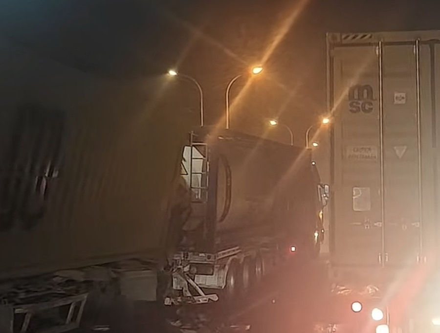 途经现场的驾驶员介绍,事故现场为3辆半挂车发生追尾。“第一辆车抛锚后,后面两辆车躲避不及,发生了追尾。”后方两辆事故车的驾驶室严重变形,路面上散落着车辆碎片和机油。第三辆半挂车上装载的挖掘机因车辆撞击瞬间产生的巨大力度而从车上滑落。